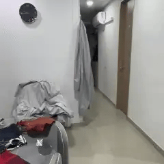 Sillas convertidas en ganchos 🪑, toallas en las puertas 🚪 y camisetas en el sofá.
